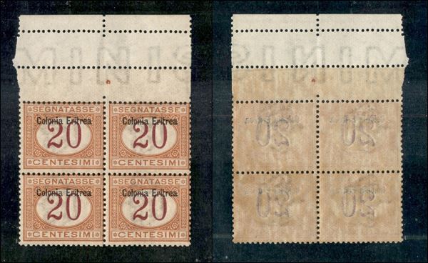 1903 - 20 cent Segnatasse (3) - quartina bordo di foglio - gomma integra