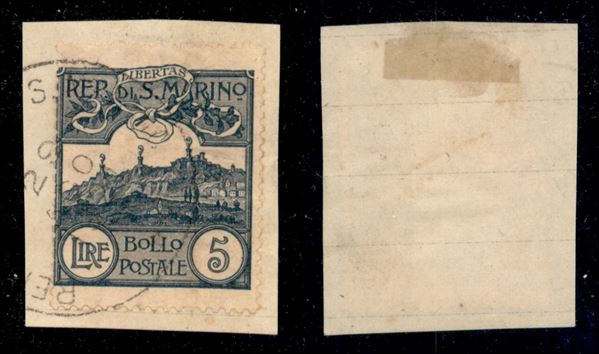 1903 - 5 lire Veduta (45) usato su frammento (400+)