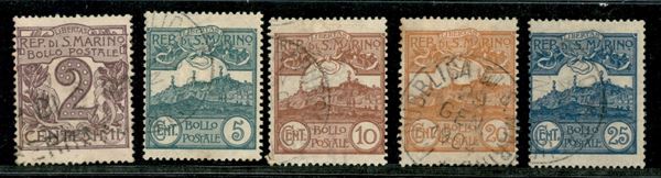 1903 - Cifra o Veduta (34/38) - insieme di 5 valori - usati