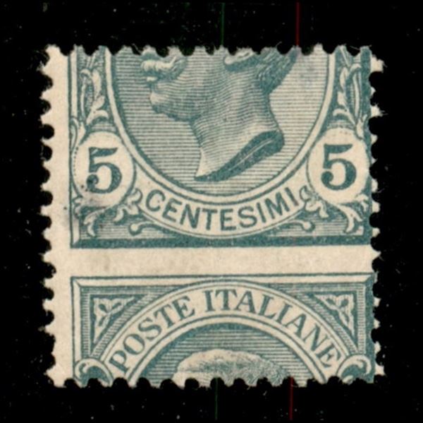 1906 - 5 cent Leoni (81 tipo nca) con dentellatura orizzontale fortemente spostata in basso - gomma originale con traccia di linguella
