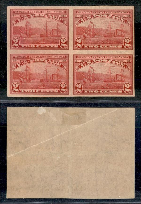 1909 - 2 cent Hudson-Fulton celebration (177B) - quartina non dentellati - nuovi con gomma - leggera piega diagonale