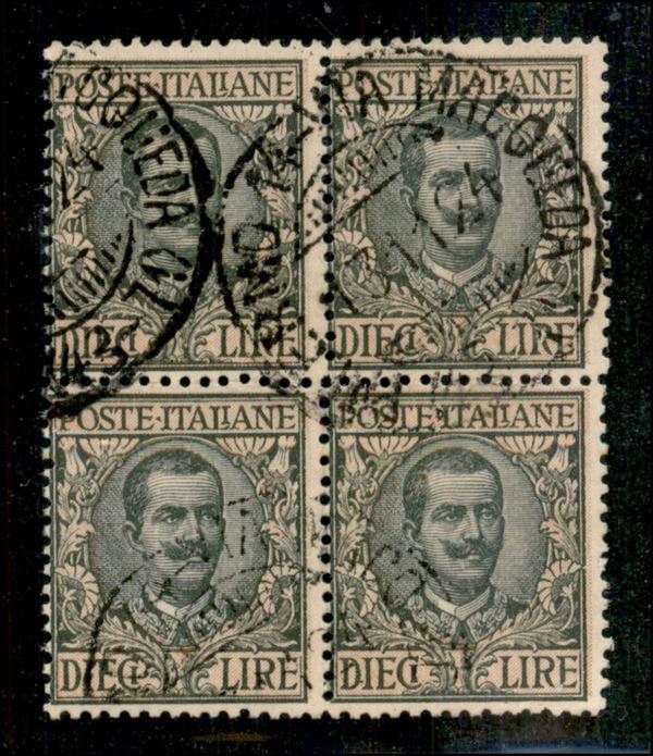 1910 - 10 lire Floreale (91) - quartina usata (300)