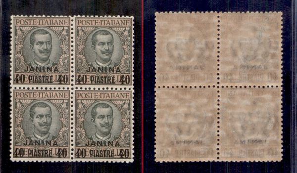 1911 - 40 piastre su 10 lire Floreale (8) in quartina - gomma integra