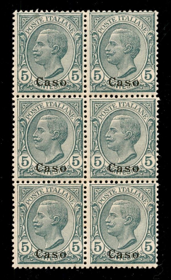 1912 - 5 cent Leoni (2) - blocco di 6 - gomma integra - ben centrati