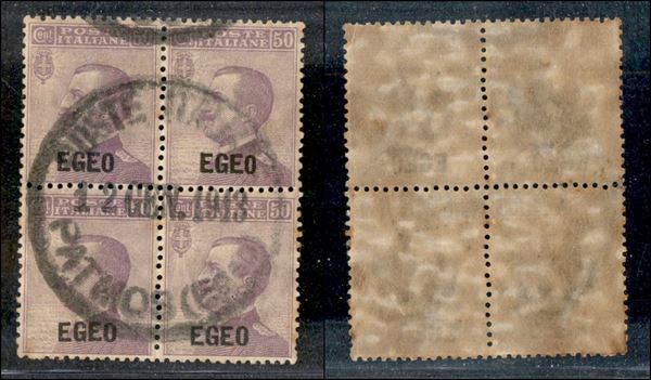 1912 - 50 cent Michetti (2) - quartina usata a Patmos il 12.1.13