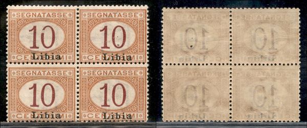 1915 - 10 cent (2e) in quartina con soprastampa in basso - gomma integra (180+)