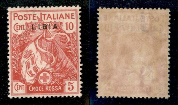 1915 - 10 cent Croce Rossa (13a) con soprastampa sottile - gomma originale con invisibile traccia di linguella - ben centrato (100+)