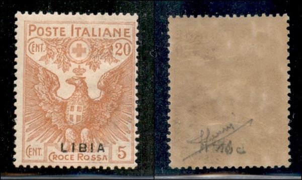 1916 - 20 cent Croce Rossa (16ac) con soprastampa sottile in basso - gomma integra (225)