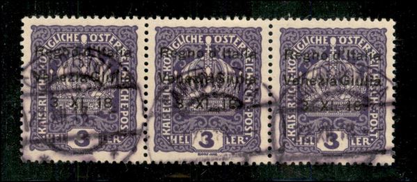 1918 - 3 heller (1 + 1m + 1) - striscia di 3 usata