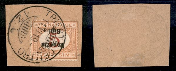 1918 - 5 cent Segnatasse (1a) con soprastampa capovolta usato su frammento (90+)