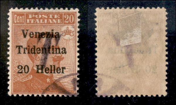 1918 - Merano - 20 heller su 20 cent Segnatasse (Bolzano 1 - 7 varietà ad) usato - soprastampa obliqua - non catalogato