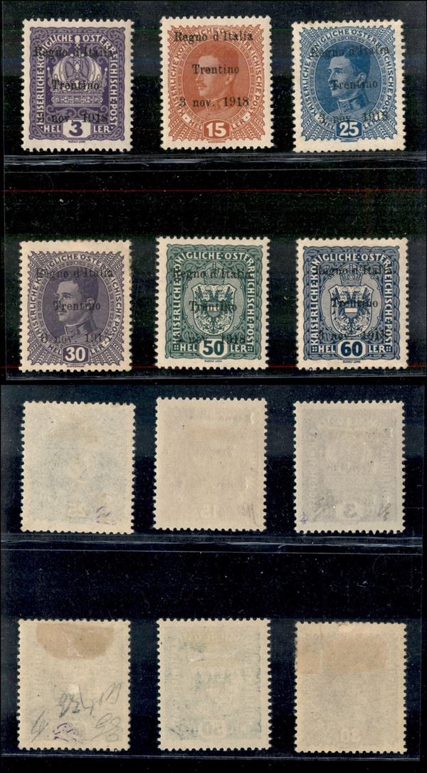 1918 - Sei valori soprastampati (1 + 6 + 8/9 + 11/12) - gomma originale (420)