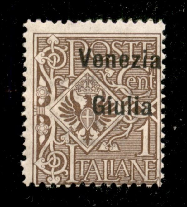 1919 - 1 cent (19 varietà eabf) - soprastampa in alto e a destra - non catalogato - gomma integra