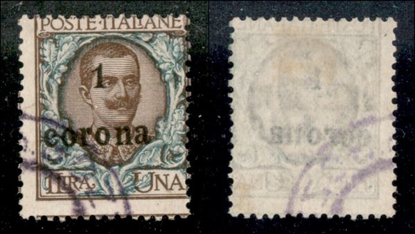 1919 - 1 corona su 1 lira (11u) usato - soprastampa obliqua (200)