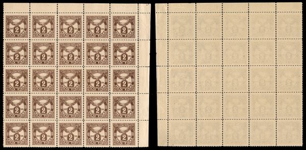 1919 - 2 cent Segnatasse (13) - blocco angolare di 25 - gomma integra