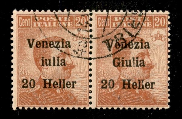 1919 - 20 heller su 20 cent (31ca + 31) - coppia orizzontale usata - senza G a sinistra