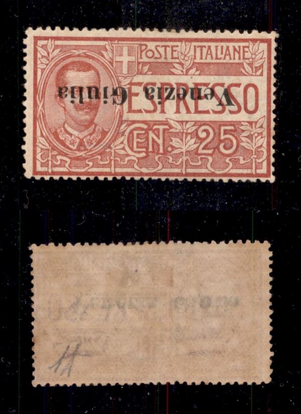 1919 - 25 cent (1a) con soprastampa capovolta . gomma originale - Diena (1.200)
