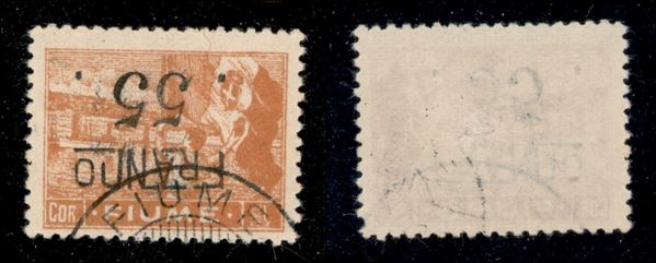 1919 - Franco 55 su 1 corona (C83b) usato - soprastampa capovolta (250)