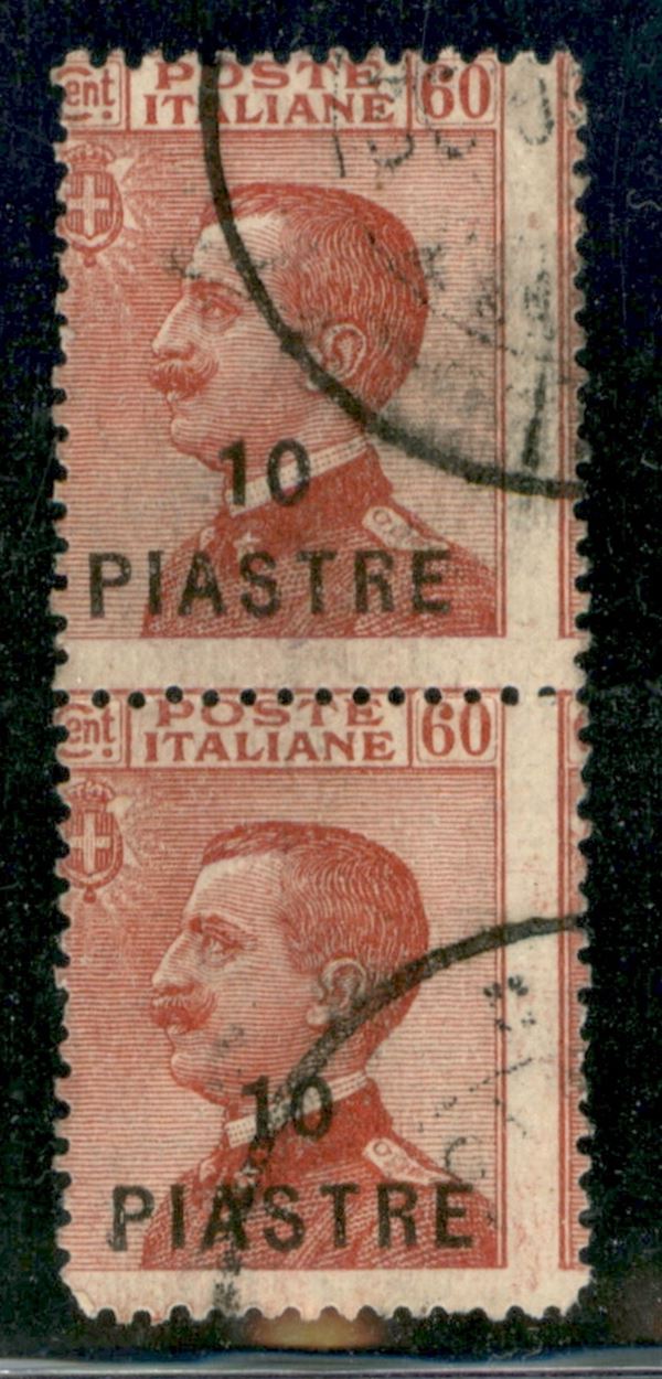 1921 - 10 piastre su 60 cent (32-varietà) - coppia verticale con dentellatura verticale e orizzontale spostata - usati - non catalogati