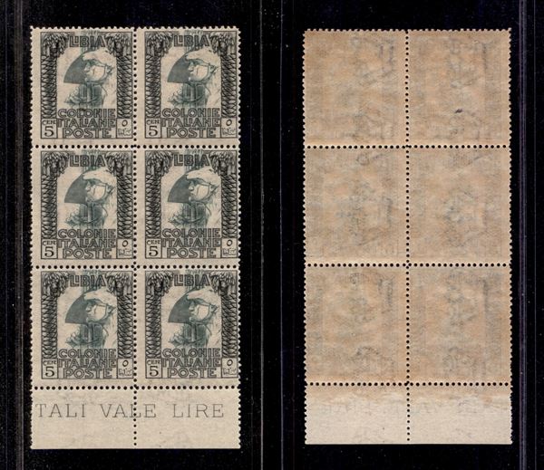 1921 - 5 cent Pittorica (23) - blocco verticale di sei bordo di foglio - gomma integra