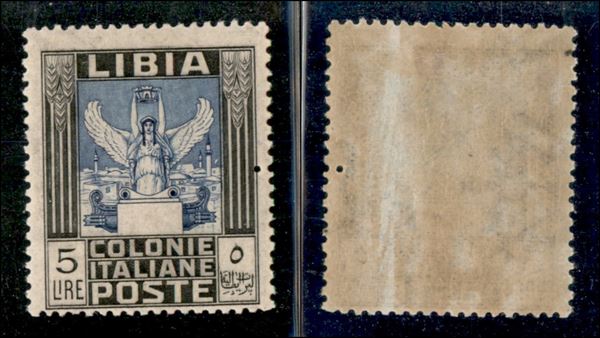 1921 - 5 lire Pittorica (31 varietà) con foro di dentellatura interno a destra al centro - gomma originale (100)