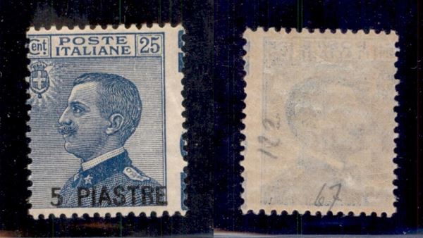 1921 - 5 piastre su 25 cent (31) con dentellatura spostata (sulle diciture marginali) - gomma originale