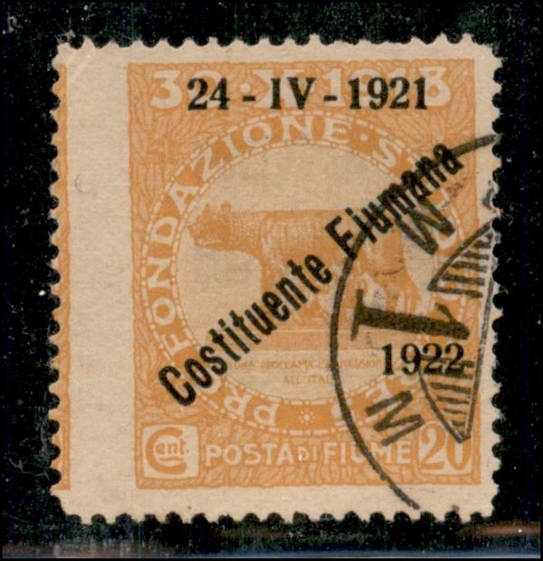 1922 - 20 cent Costituente (182 varietà) usato - dentellatura sinistra spostata (31 mm di larghezza) - non catalogato