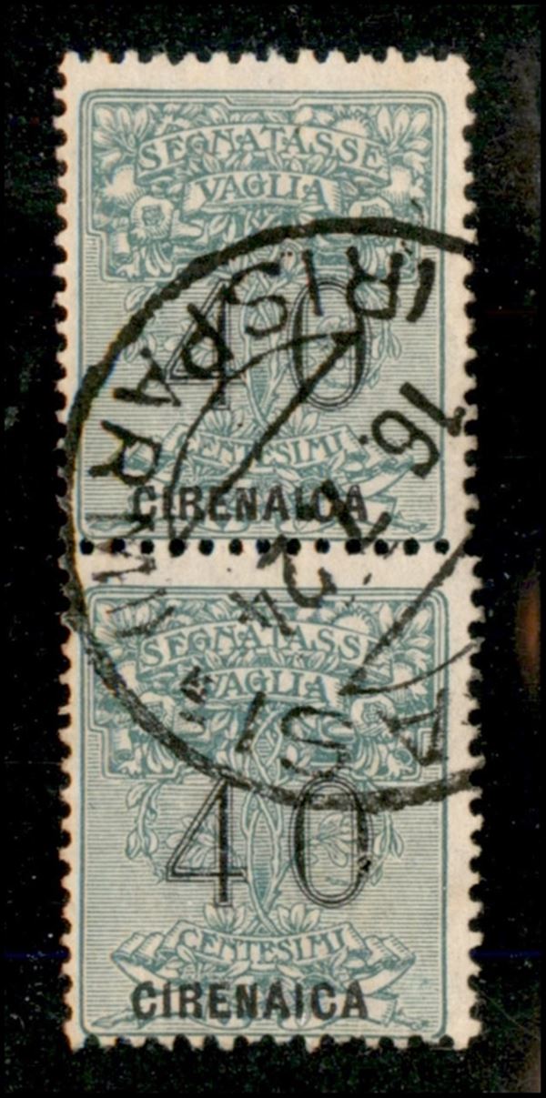 1924 - 40 cent (2) - coppia verticale usata - un valore con foro di spillo (300)