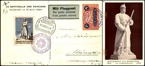 1924 (31 agosto) - La Caquerelle Lausanne - cartolina ufficiale (La sentinelle des Rangiers) per Monaco (con vignetta)