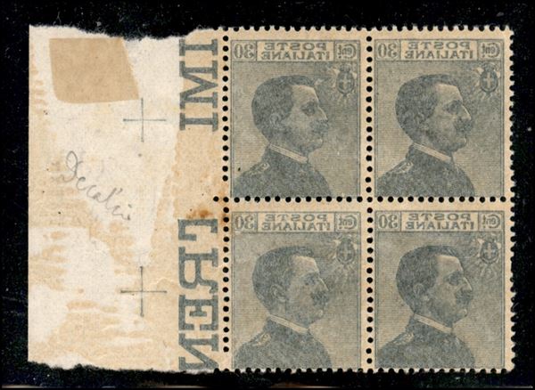 1925 – 30 cent Michetti (185g) – quartina bordo foglio con decalco – gomma integra (180+)