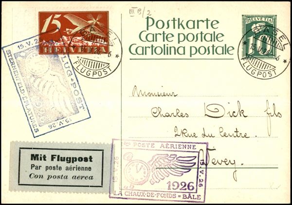 1926 (15 maggio) - La Chaux de Fonds Basilea + Sternenfeld Eplatures - cartolina postale per Vevey