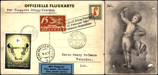 1927 (17 febbraio) - Brugg Yverdon + Pestalozzi Gedenkfier - cartolina ufficiale per Zurigo