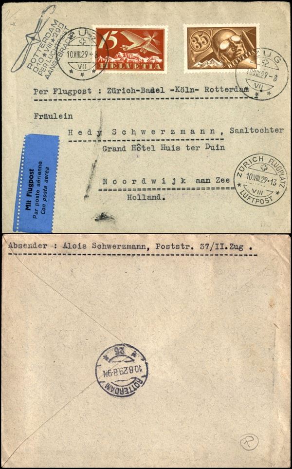 1929 (10 agosto) - Zurich Basel Koln Rotterdam - aerogramma per Noordwijk