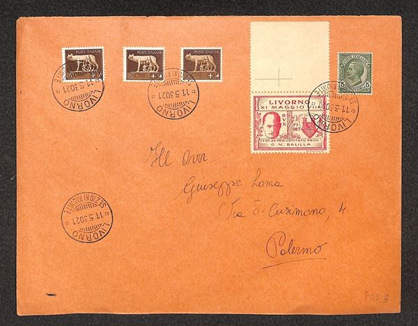 1930 - 30 cent (1) bordo di foglio + complementari (81+242A tre) - busta per Palermo del 11.5.30 - cert. AG