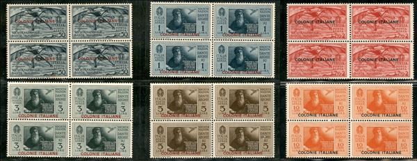 1932 - Società Dante Alighieri Posta Aerea (8/13) - serie completa in quartine con lievi ingiallimenti - su 2 valori (8-13) gomma originale (coppie superiori) + gomma integra