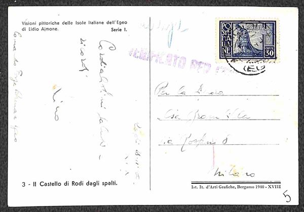 1932/1940 - Quattro cartoline e un intero postale per l'Italia con affrancature del periodo
