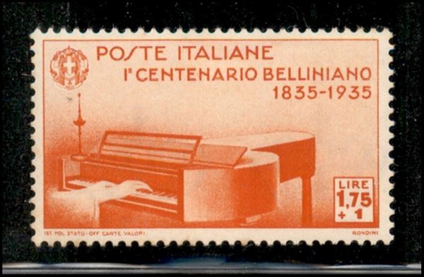 1935 - 1.75 + 1 lira Bellini (392) - gomma integra - piccole macchie d'umido al retro