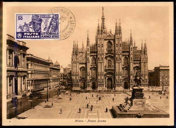 1935 - Littorali (377/379) - serie completa usata su tre diverse cartoline - Milano 30.4.35
