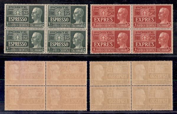 1938 - Espressi (1/2) - serie completa in quartine - gomma integra