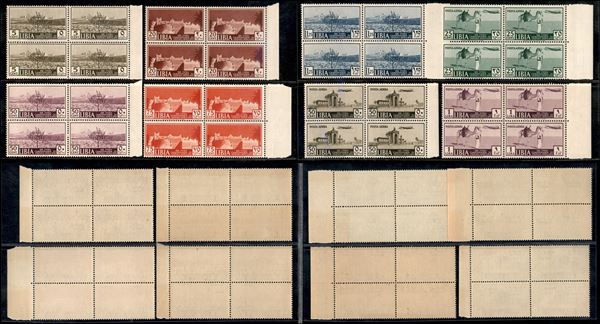 1939 - Tredicesima Fiera (158/162 + Aerea 38/40) - serie completa in quartine - gomma integra (140)