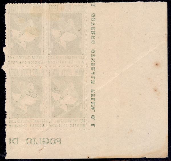 1941 - Franchigia Militare (1) - quartina angolo di foglio - piega diagonale che attraversa il valore in basso a sinistra - sempre senza gomma - da esaminare