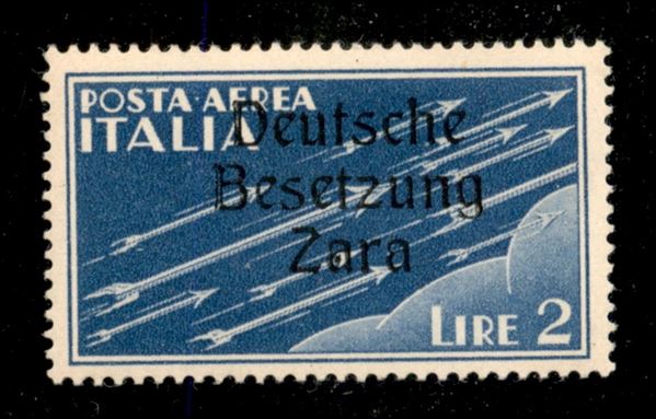 1943 - 2 lire Posta Aerea (6 varietà) - prima "a" con punto - gomma integra - non catalogato - Oliva