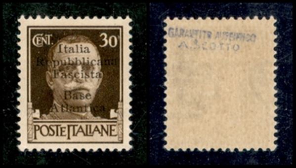 1943 - 30 cent (10 varietà) - I di Italia a L rovesciata - gomma integra - non catalogato