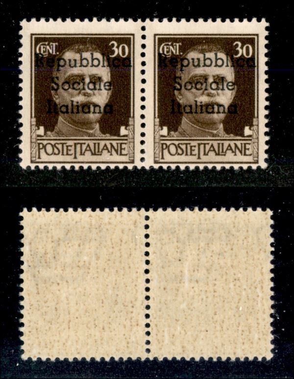 1944 – 30 cent (4l + 4) – coppia con u piccolo a sinistra – gomma integra (132+)