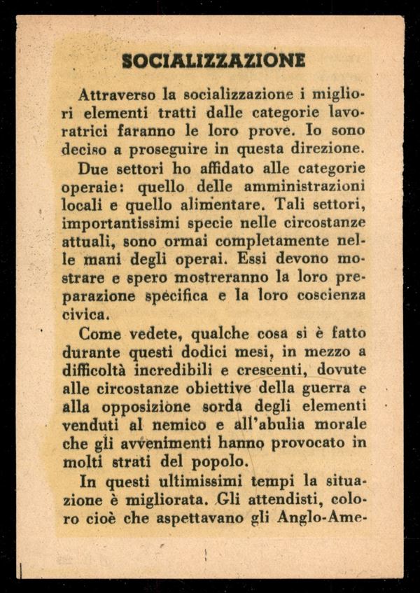 1944 - Socializzazione - volantino di propaganda (8X12)