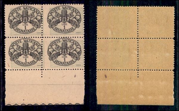 1945 - 1 lira (10 - varietà gaa) quartina bordo foglio con dentellatura centrale spostata a sinistra (e obliqua nella coppia inferiore) - gomma integra - non catalogato