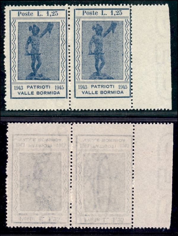 1945 - 1,25 lire Perseo (14bb) - coppia bordo foglio con filigrana corona - sempre senza gomma (900++)