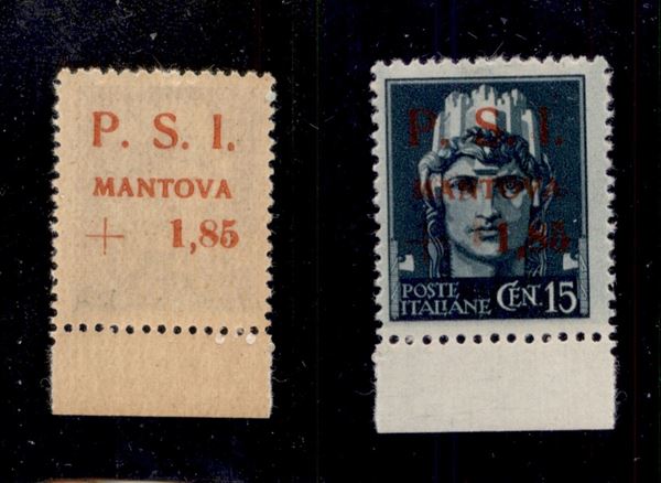1945 - 15 cent + 1,85 lire (2aa) - soprastampe recto verso - gomma integra (1.500)