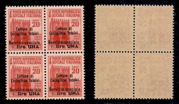 1945 - 20 cent + 1 lira (5) in quartina - gomma integra (500+)