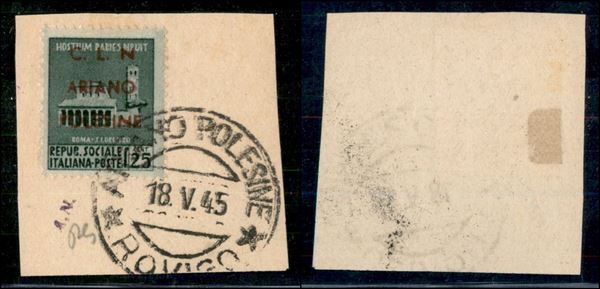 1945 - 25 cent (Errani 32A varietà) senza punto dopo N - usato su frammento